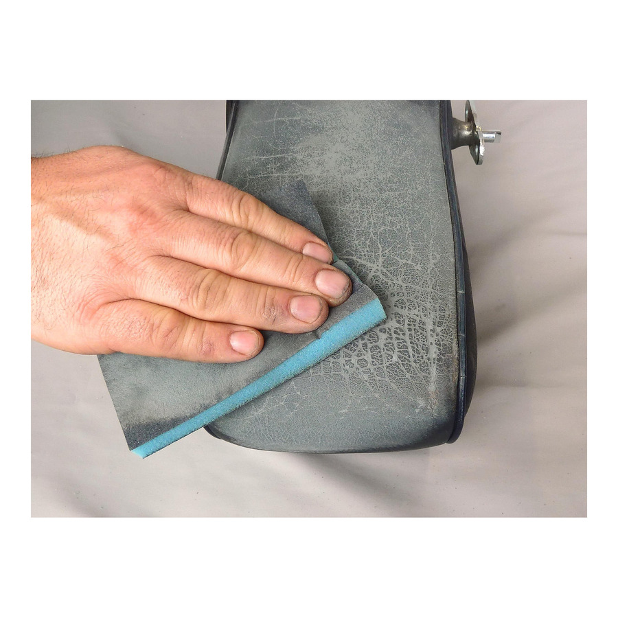 После высыхания связующего обработайте шероховатые участки шлифовальной губкой COLOURLOCK для создания идеально ровной поверхности. Глубокие трещины и разрывы предварительно заполните средством Fluid Leather. -