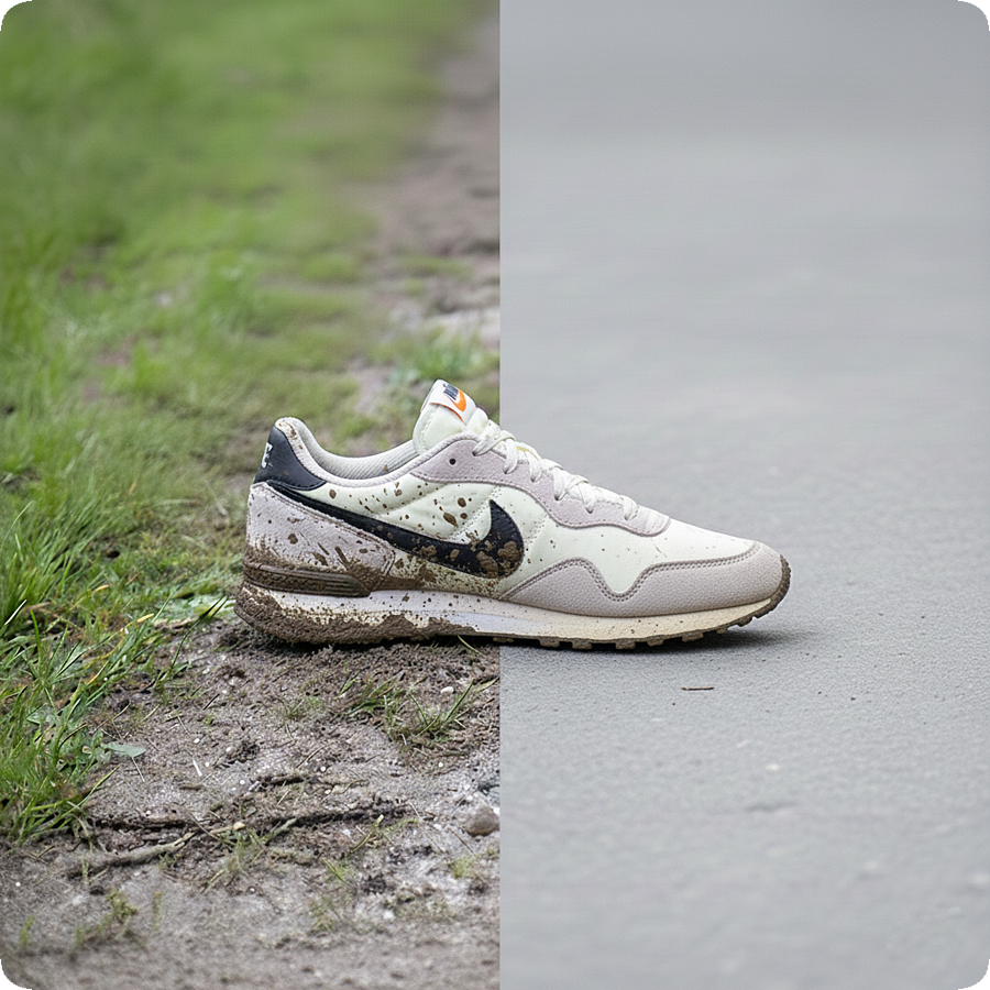 Удаление остатков: Протрите обувь слегка влажной салфеткой из микрофибры, убирая пену вместе с грязью.