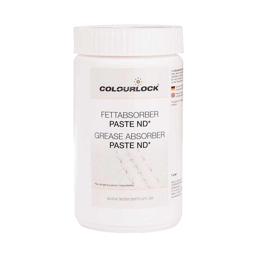 COLOURLOCK ND – это профессиональное средство для удаления стойких жировых пятен с кожаной мебели. Уникальная желеобразная формула проникает в глубокие слои кожи, растворяя даже самые старые загрязнения, а абсорбент надежно удерживает их, не позволяя растекаться.